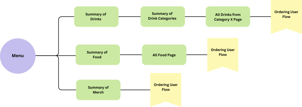 Something that was integral to the ordering experience as well was the ordering process. I continued to analyze the findings from my primary and secondary research and created the following flow: