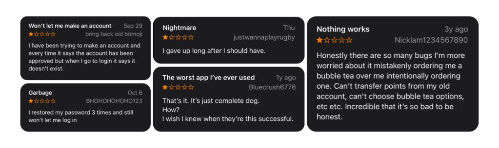In the post-pandemic era, mobile apps have become essential tools for quick-service restaurants (QSR) to deliver seamless customer experiences. Despite its strong market presence, Chatime’s mobile app struggles with a low average rating and consistent user complaints. Customers report frustration with its inefficient ordering process, leading to abandoned transactions and dissatisfaction.