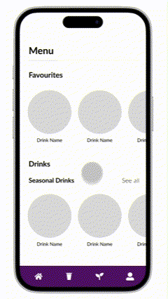 Redesign the homepage to serve as a hub for key user tasks. Highlight features like quick reordering, rewards balance, and personalized promotions (e.g., seasonal drinks or new menu items). This approach enhances efficiency and keeps users engaged with the app.