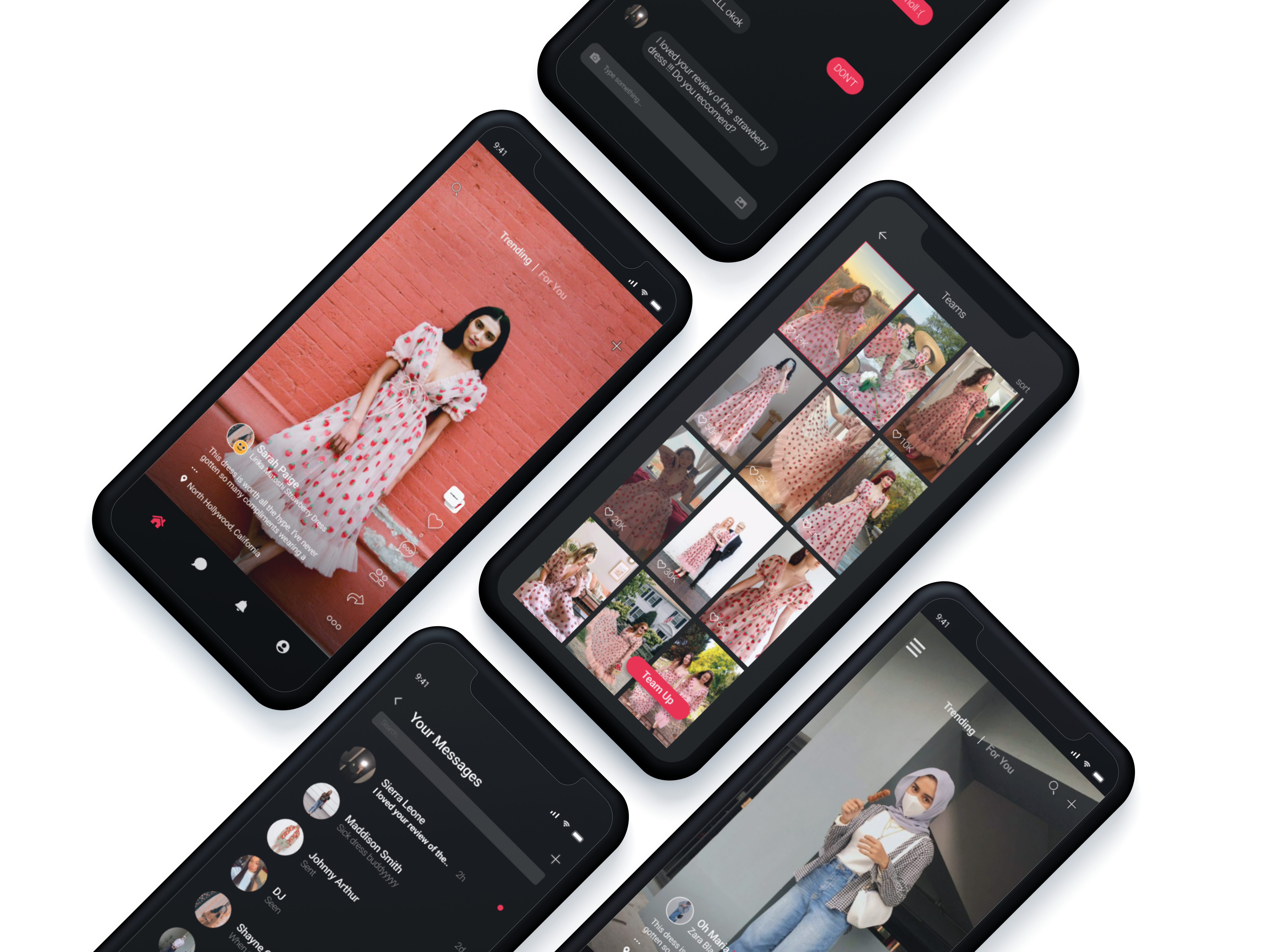 Some of these screens I was responsible for creating as a UI/UX designer were: the navigation bar, the homepage (as well as the flows corresponding to it – ie. liking, commenting, sharing, teams feature, and brands feature), and the messaging feature. Most of my time was spent on the homepage, as that was the place users would spend the most time.