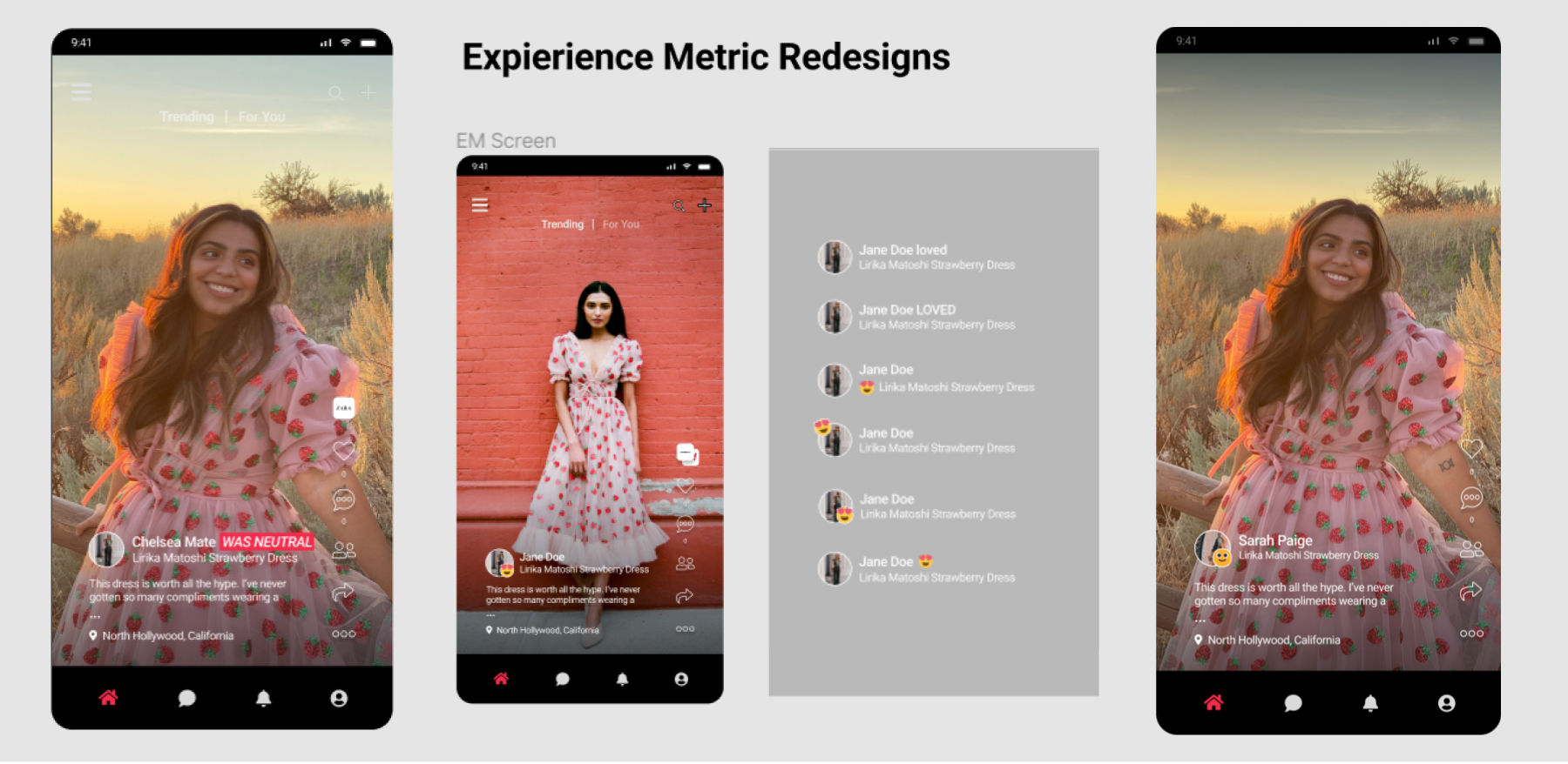 Experience Metric : the goal of this feature was to show the user’s feelings towards the app in a quick manner – instead of reading the entire review, user’s could just look at the emotion tied to the product to get a quick review.